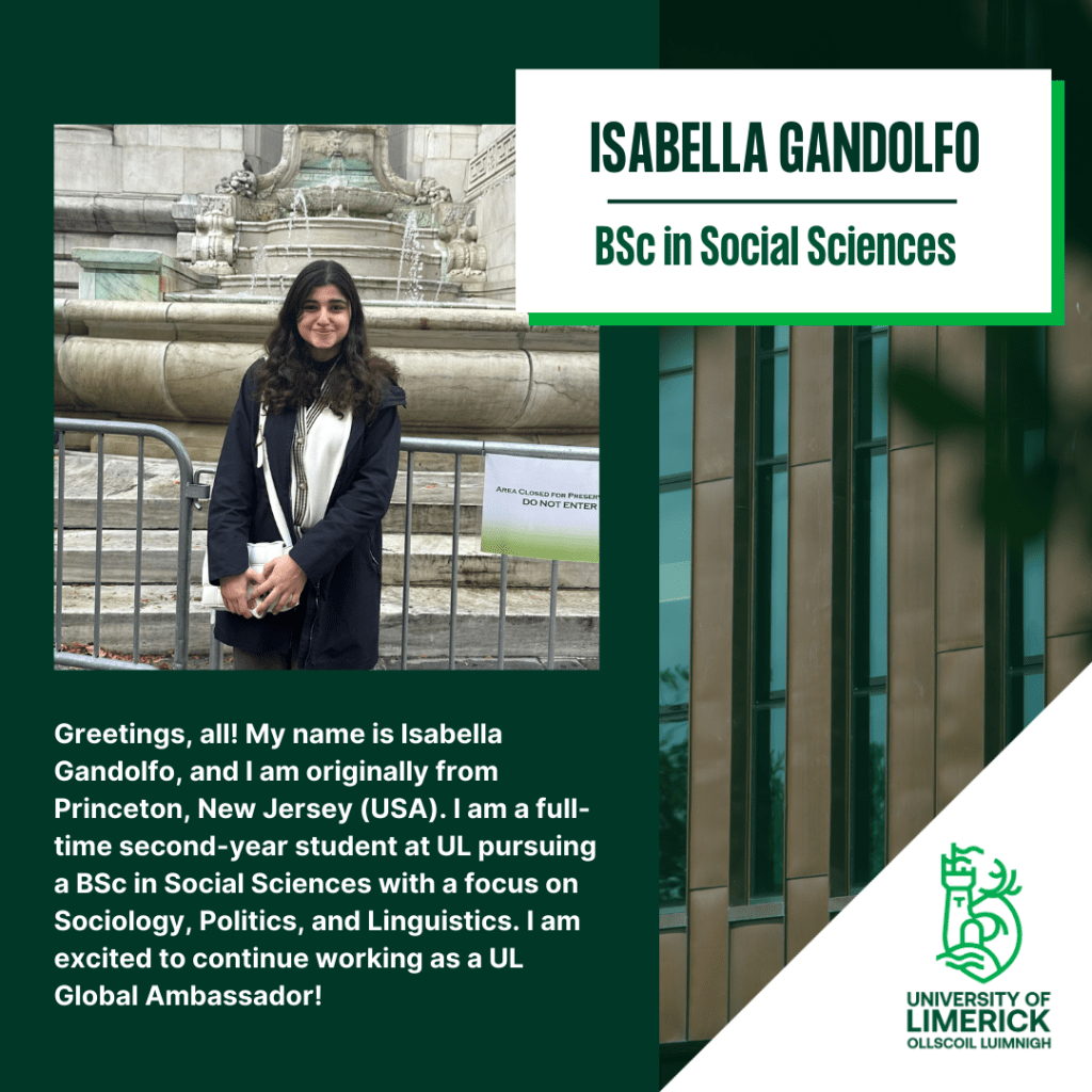 This blog is created by students, for students. What better way to learn about life in UL than from the students who have lived and studied here! Nervous or stressed about moving so far from home? Not sure what Clubs or Societies to join? Don’t know what to pack? Our International Ambassadors are here to help you by writing blogs that answer these questions! They too know how exciting, yet overwhelming, it can be to study abroad, but that’s why they are dedicated to making this an easy transition for you! Here are our current International Student Ambassadors: